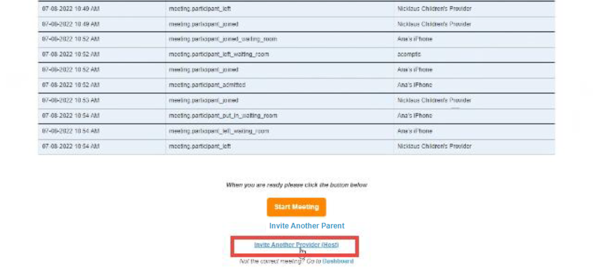 on the Telemedicine Link from the Chart), you will now have a link to invite