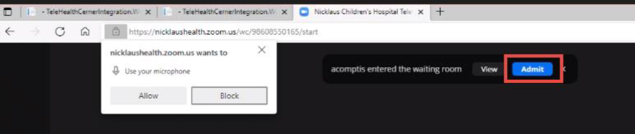 Allow Zoom to use your microphone, and admit the patient in the waiting