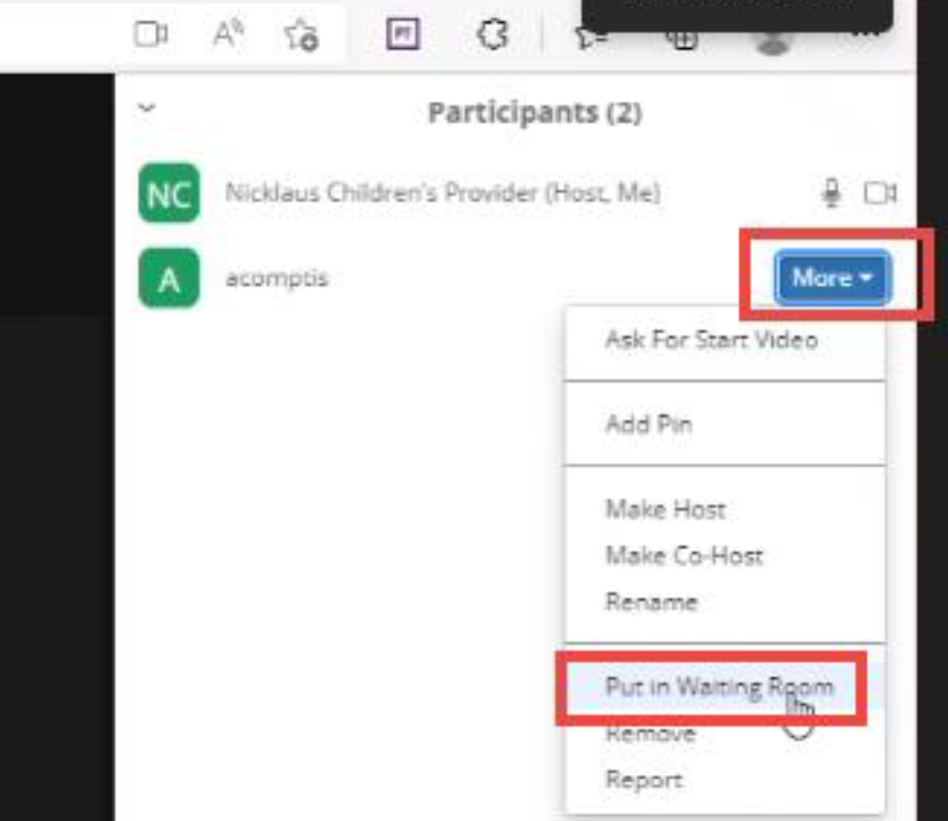 In the original Nicklaus Children's Pediatric Virtual Care Telehealth window where the call was started (If