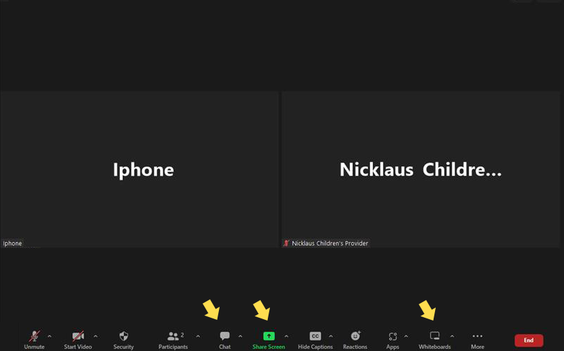 - Once the patient is admitted to the call, you can use several standard Zoom